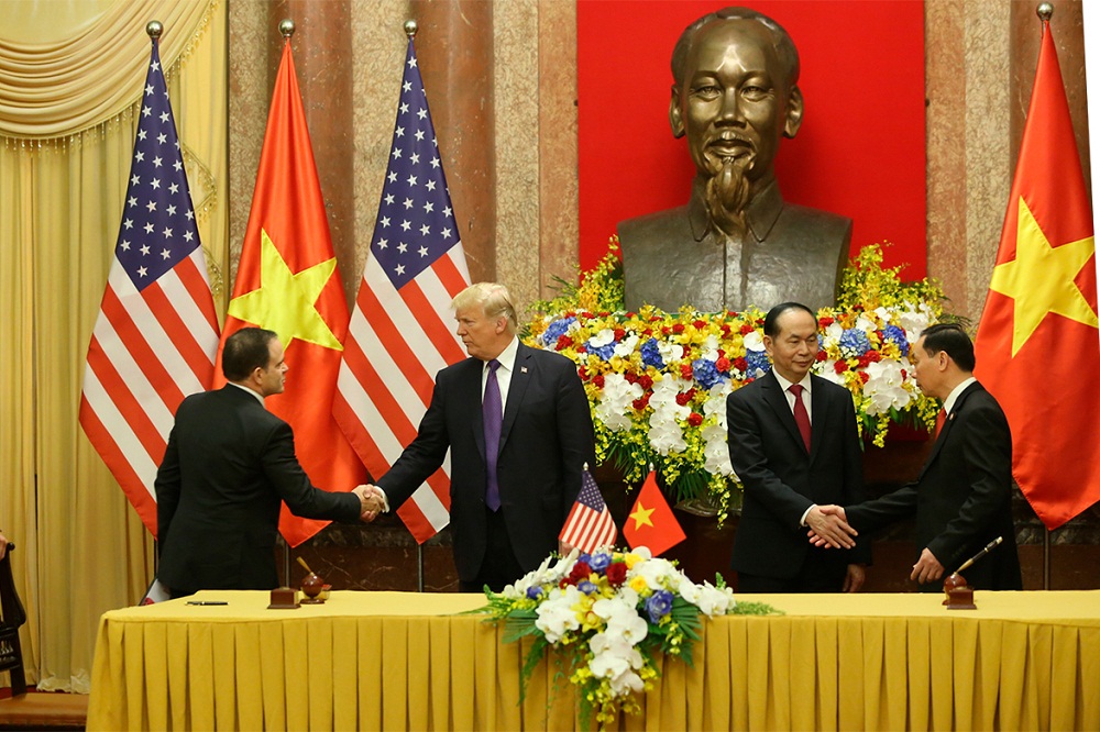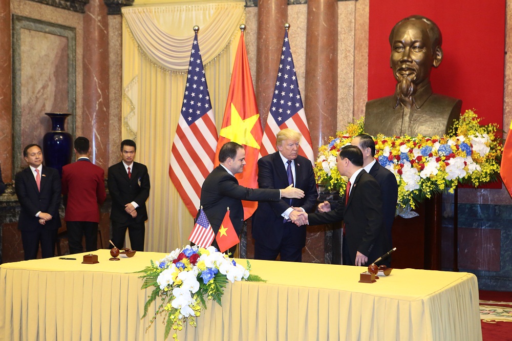 Mr. Do Huu Ha shaked hands with Mr. Donal Trump
